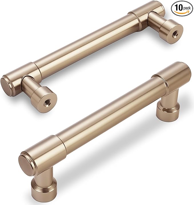 10 Pack Champagne Bronze Pulls 3-3/4 Inch(96mm) Hole Centers Kitchen Cabinet Handles Zinc Alloy Champagne Drawer Pulls