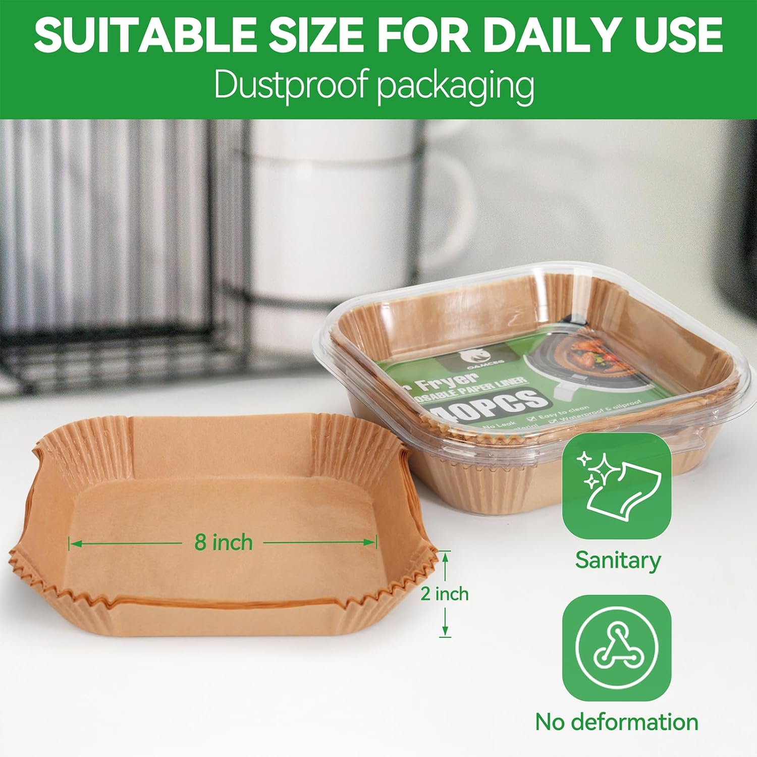 - EASY TO USE: These premium disposable liners are round bowl shape, easy to hold food and place on a tray or basket to cook.8 inch diameter non-stick liners are perfect for 5-8QT food, can be used to hold the cooked food directly, save your cleaning time.