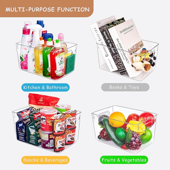Clear Plastic Storage Bins-6 Pack Large Pantry Organizers and Storage Containers for Kitchen, Bathroom, Under-Sink, Office, Closet, Garage, Freezer and Snack