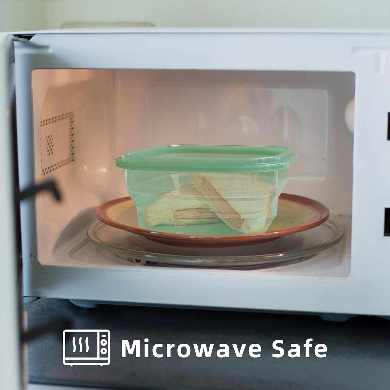 KVK 4 Pack Collapsible Food Storage Containers, Silicone Food Storage Containers With Lids, Green Reusable Collapsible Bowls For Camping, Dishwasher Safe Kitchen Supplies