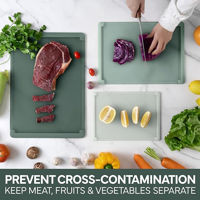 - Chopping Board Set: This 3-piece set of cutting boards for kitchen dishwasher safe is perfect for all your food preparation needs. The durable plastic material ensures they are chopping boards for kitchen made to last.