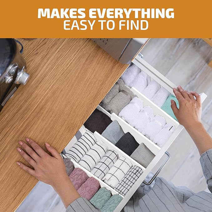 - MULTIPURPOSE DRAWER ORGANIZERS - This set of drawer dividers will keep your drawers neatly organized so you can find what you need right away. The bamboo drawer organizer works as your custom organizer for anything, from cutlery to lingerie and looks attractive in any room: kitchen, bathroom, office or bedroom.