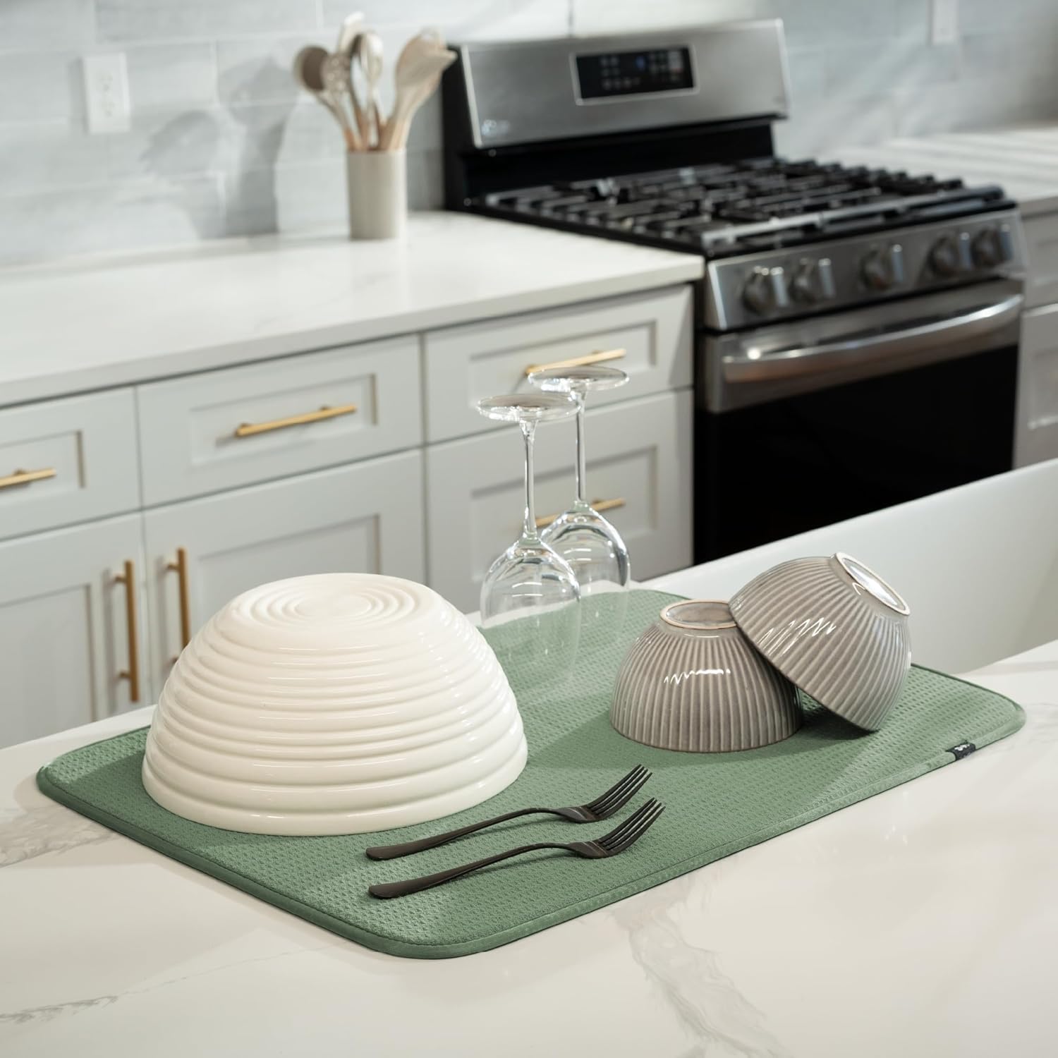 - Dish drying mats for kitchen counter are reusable, machine washable, and easy to store for kitchen organization; durable construction will not chip or break like a stone dish drying mat for kitchen