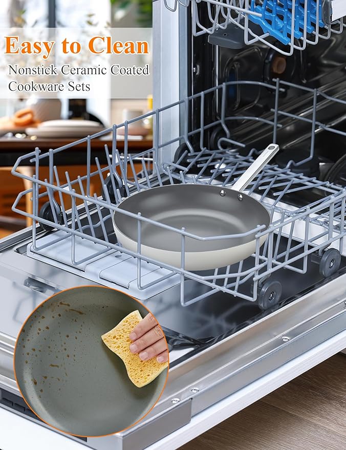 - Healthy Cooking Option:Free from harmful chemicals like PFOA, lead, and cadmium, this ceramic pan is safe for your family, ensuring toxin-free meals.Providing an ultra-smooth cooking surface, this skillet ensures food slides off effortlessly without sticking, even with minimal oil.