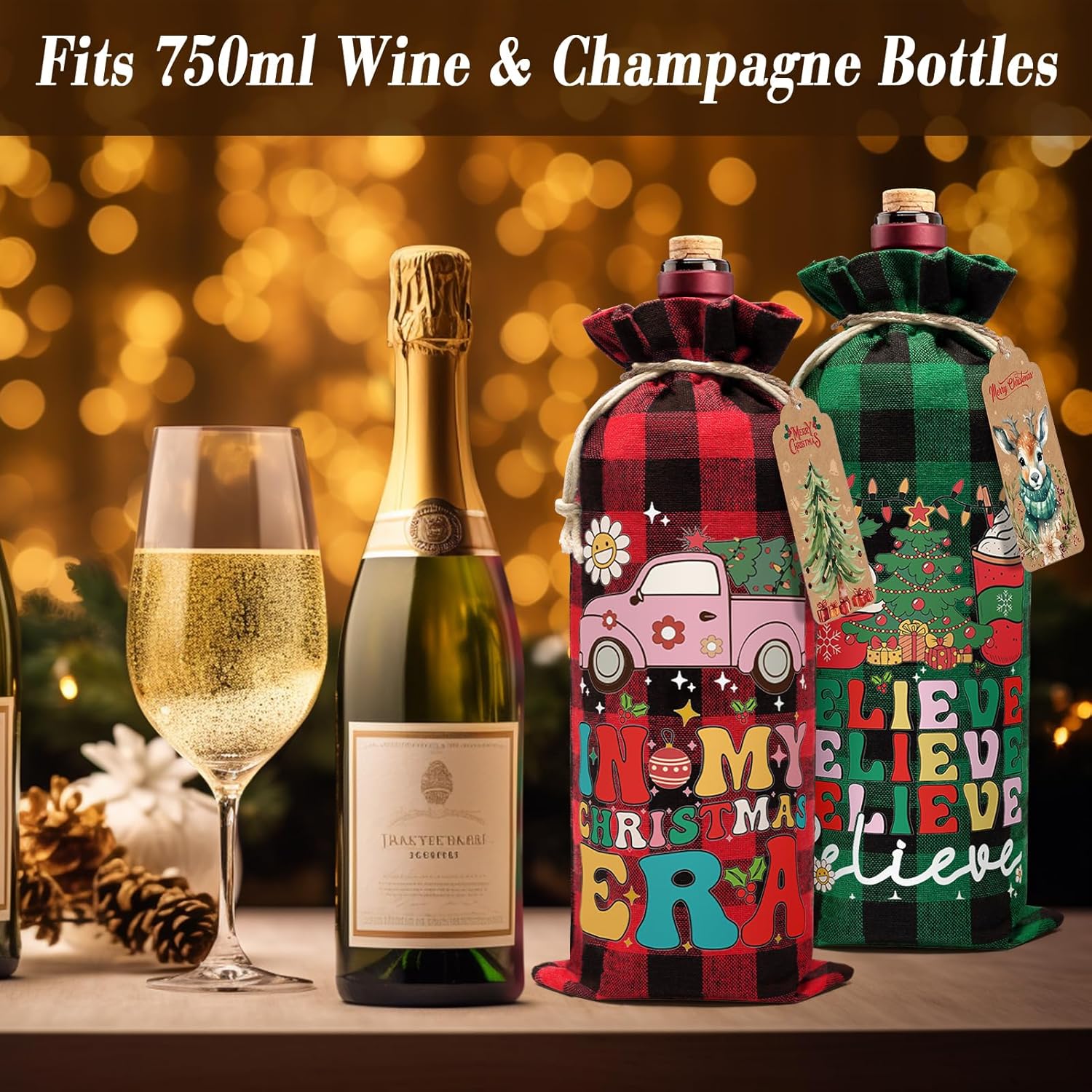 - VALUE PACKAGE: Each set contains 24 buffalo plaid wine bags and 12 retro Christmas gift tags (featuring a space on the back for your messages), along with a 10-meter-long jute rope. This all-in-one package caters to all your wine wrapping needs. Simply write your heartfelt messages and attach the tags to our Christmas wine bottle bags. Whether youโ re presenting wine or champagne to loved ones or using our holiday wine gift bags to enhance your home decor, itโ s sure to make a memorable impact