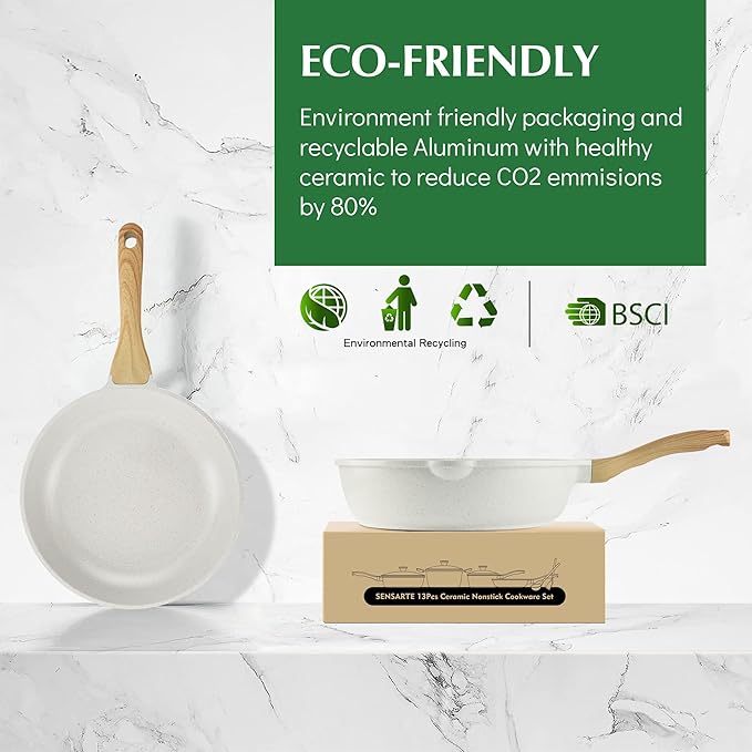 - Building a Green Future Starts in Your Kitchen - Made with recycled aluminum, reduces COâ‚‚ emissions by 80%. Our eco-conscious cookware delivers professional performance while reducing environmental impact.