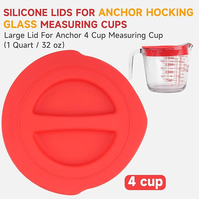 - - CAUTION BEFORE BUYING: Please verify the model of your container prior to purchase. Our lids are only compatible with the Anchor Hocking 4-Cup Anchor Hocking Glass Measuring Cup. For any questions, please feel free to contact us.