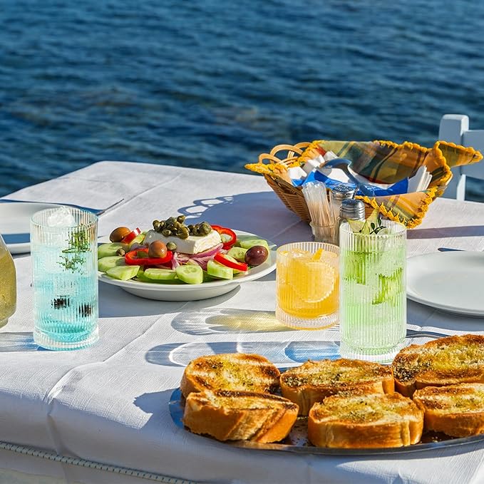 - 【Ribbed Beauty, Enhanced Experience】The ribbed texture of POLIDREAM drinking glass is not just for show. It provides a better grip, ensuring that your drink stays in your hand and not on the floor. The unique design also adds a touch of sophistication to your table setting. Whether you're sipping on water, juice, or beer, these tumbler glasses are a stylish choice