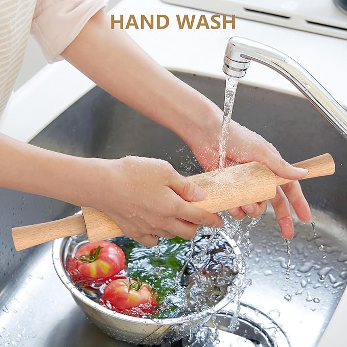 - 🍕Durable Construction: Crafted from high-quality moisture-resistant hardwood, this rolling pin is sturdy and long-lasting, ensuring consistent performance over time.