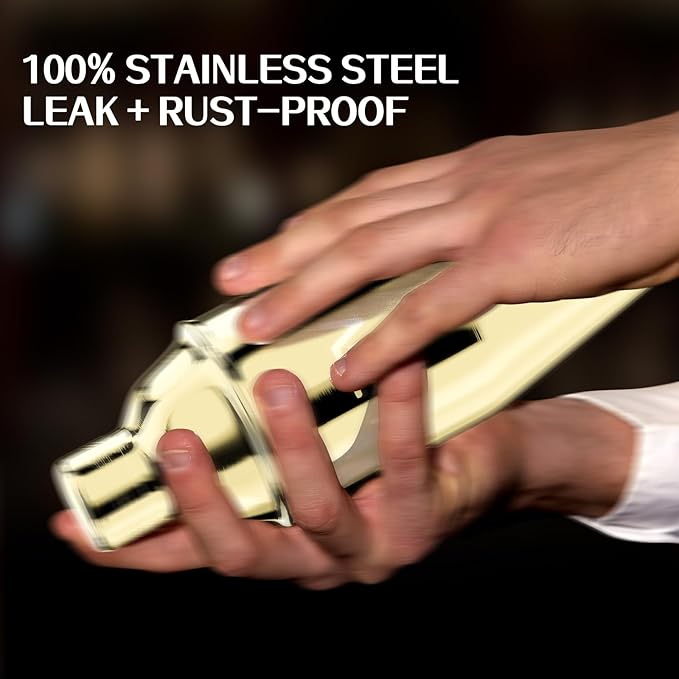 - LEAK PROOF AND DURABLE: This cocktail mixer is made of high-quality, rust-proof, and food-grade stainless steel that makes it perfect for creating mouth-watering beverages at every party, while remaining shiny for years to come. The leak proof lid prevents the drinks from spilling, and is also easily detachable. The entire cocktail making kit is dishwasher safe.