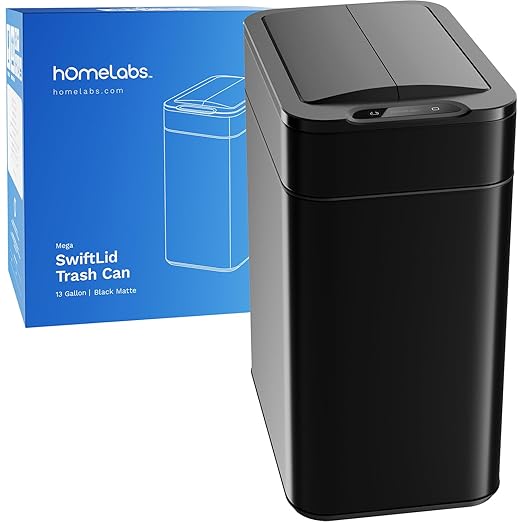 hOmeLabs - 13 Gallon Kitchen Trash Can - Retractable Automatic Sensor Butterfly Lid, Space-Saving Design, Easy to Clean, Battery-Operated with Batteries Included - Matte Black