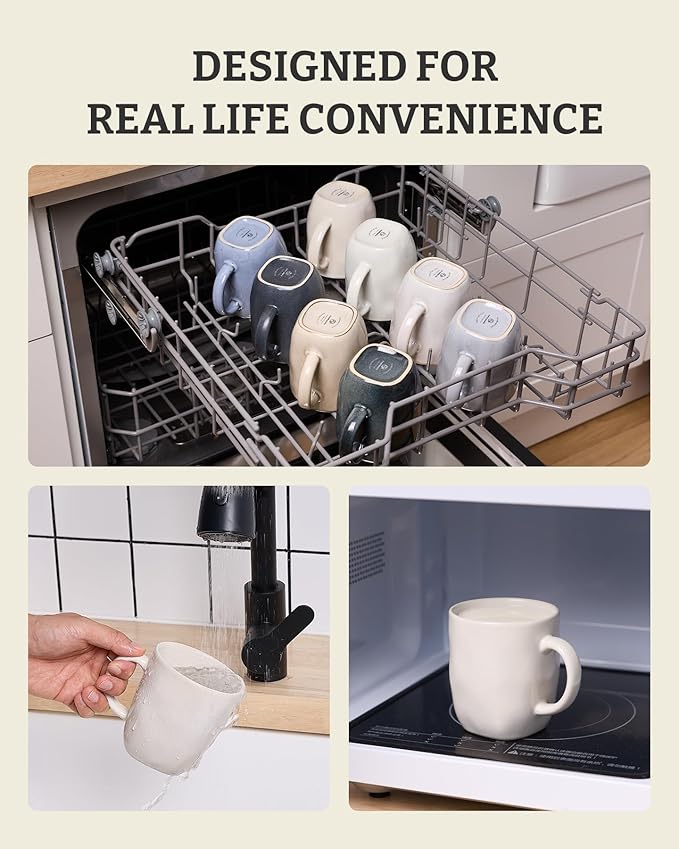 - 【Dishwasher and Microwave Safe】 Famiware Stoneware coffee cups for the kitchen are made of premium stoneware. Each plate and bowl is dishwasher and microwave safe.