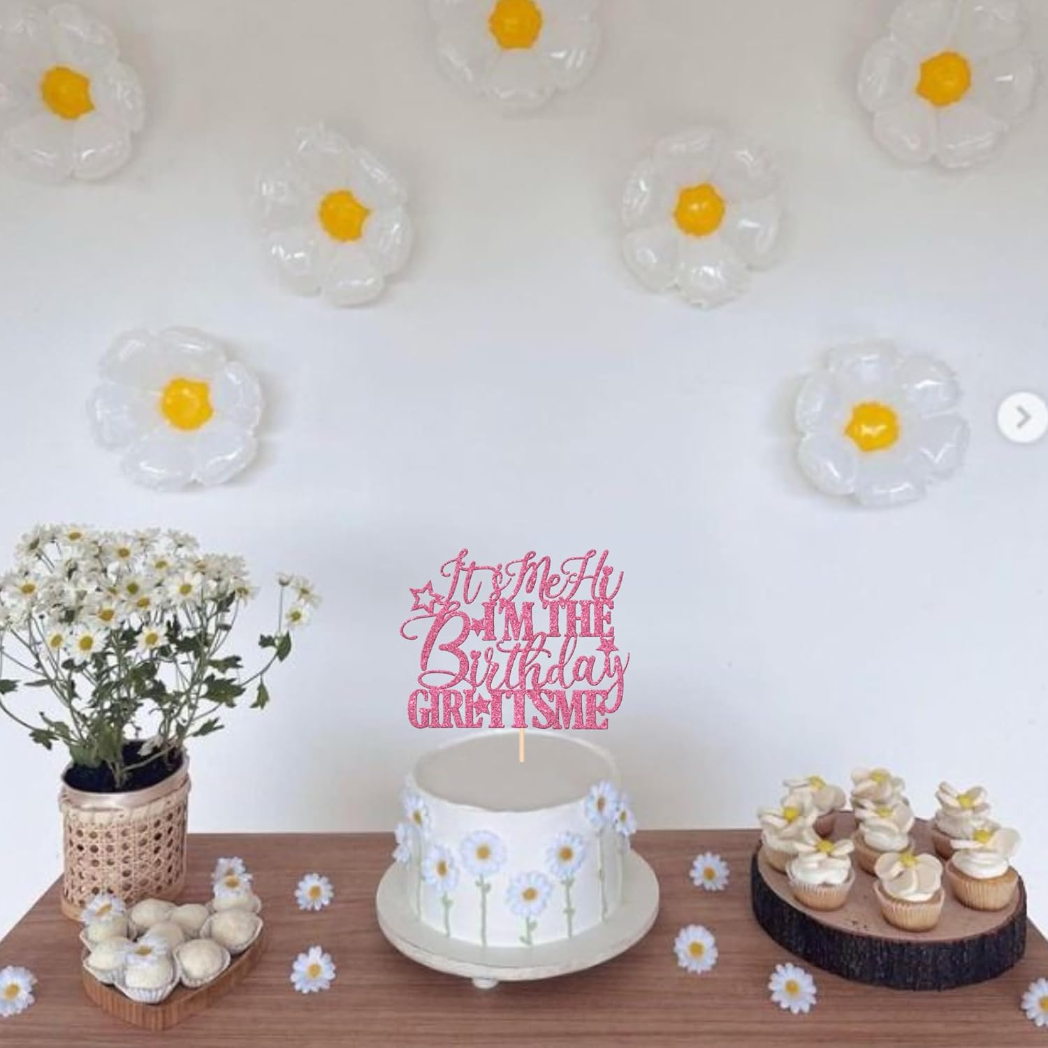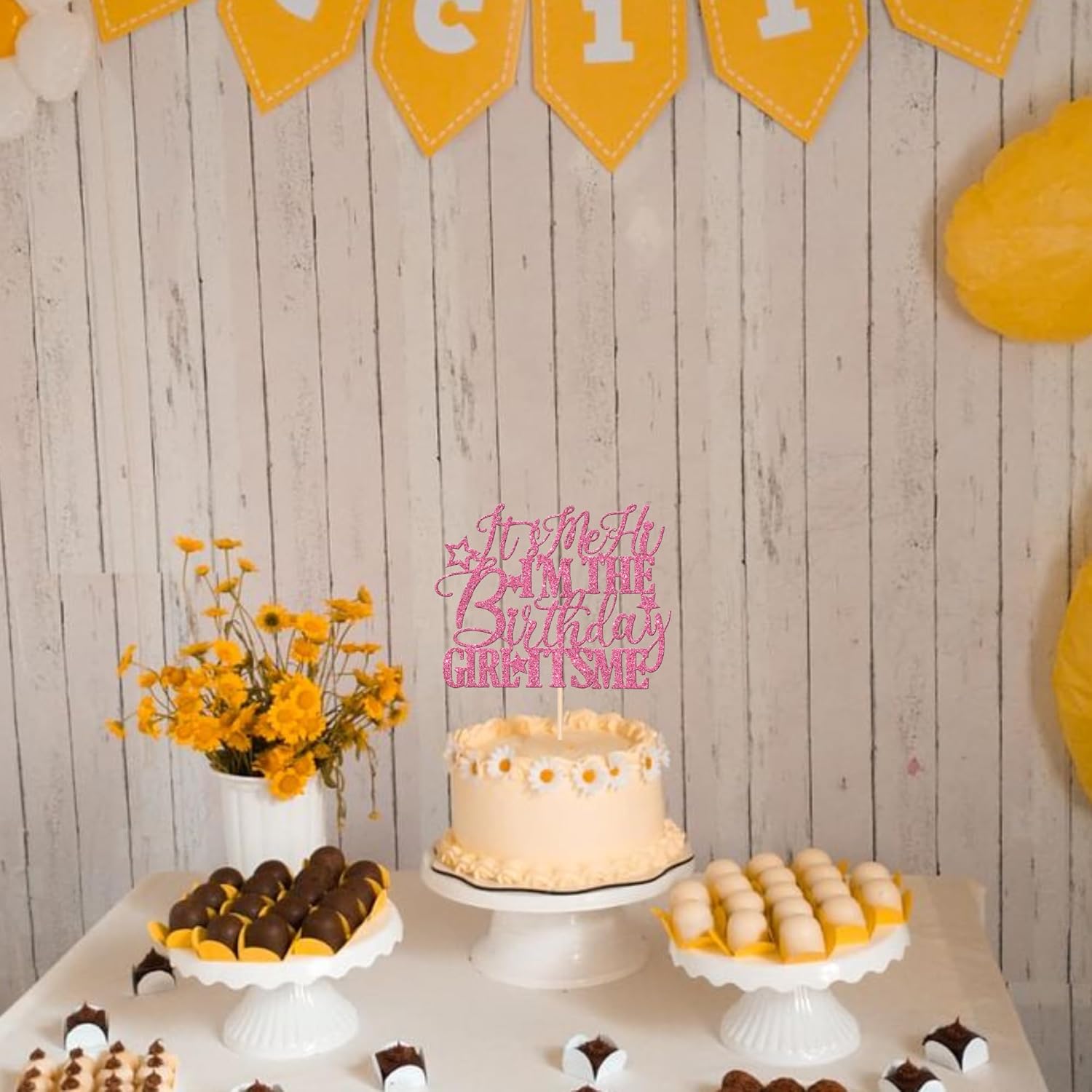 1 PCS It's Me Hi I'm the Birthday Girl It's Me Cake Topper Glitter Music Singer Cake Pick for Funny Hip Hop Singer Girls Birthday Party Cake Decorations Supplies Pink