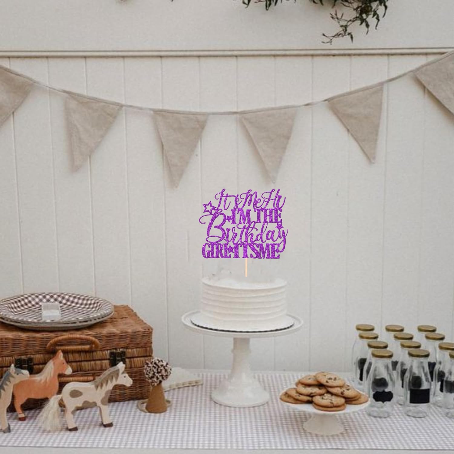 1 PCS It's Me Hi I'm the Birthday Girl It's Me Cake Topper Glitter Music Singer Cake Pick for Funny Hip Hop Singer Girls Birthday Party Cake Decorations Supplies Purple