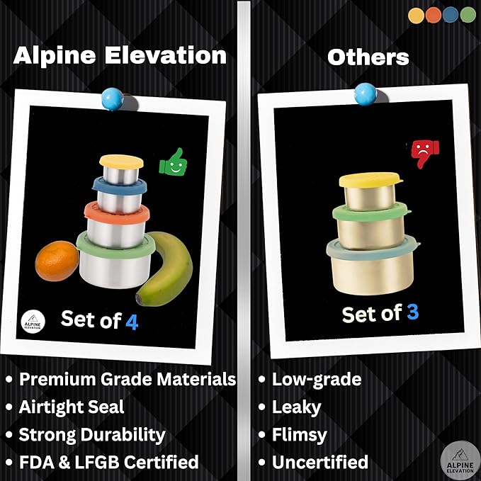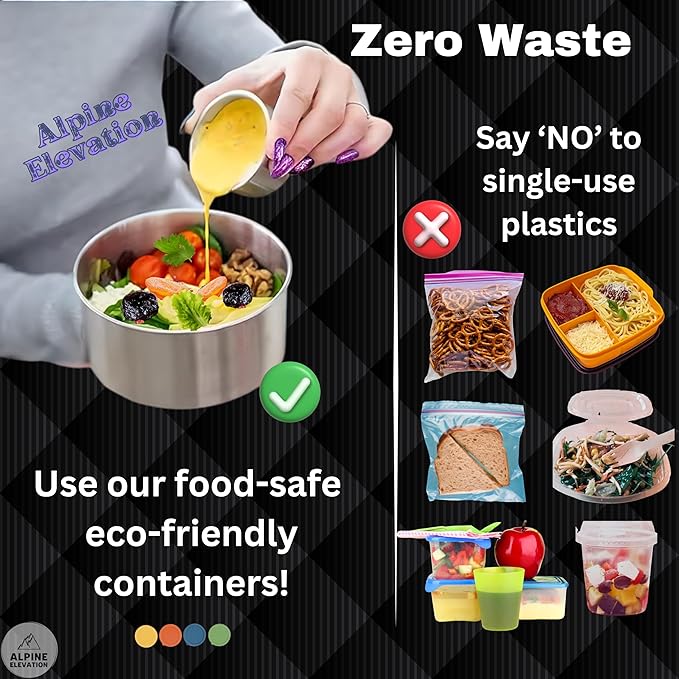 - Ease of Use: Alpine Elevation's stainless steel containers with lids are fridge, freezer, and top-rack dishwasher safe. Their smooth design prevents food from sticking, making cleanup a breeze!