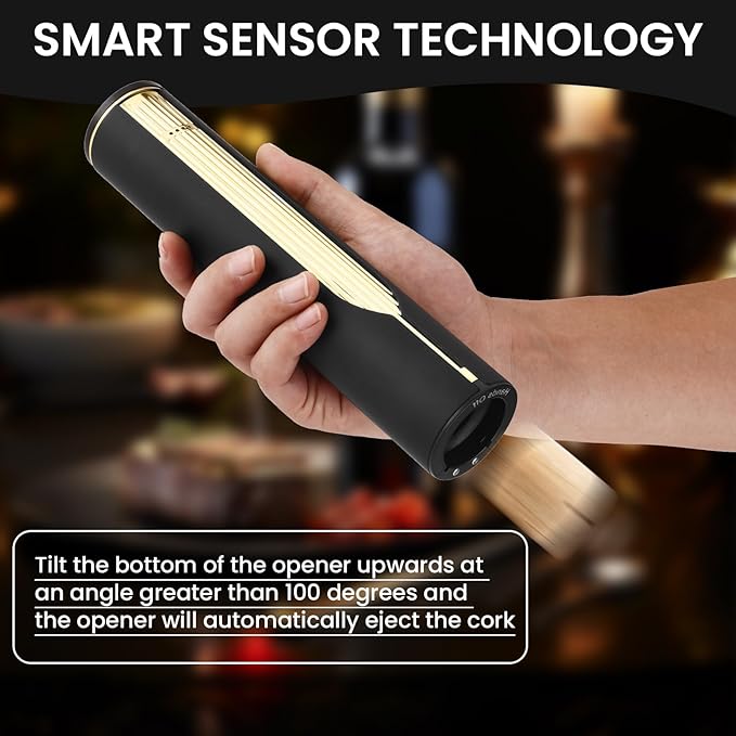 - 1.Effortless Cork Removal: Experience the ease of uncorking your favorite wines with our fully automatic electric wine opener. Simply place it over the bottle, and in just 5-7 seconds, the cork is smoothly extracted without any buttons or manual effort. Say goodbye to the struggle of traditional openers