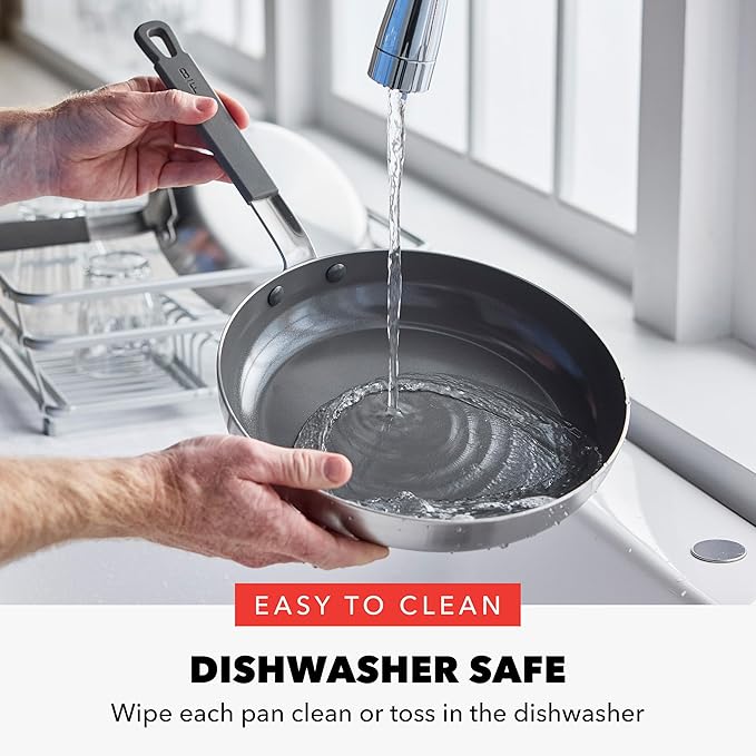 GreenPan x Bobby Flay Stainless Steel 8” & 10” Frying Pan Skillet Set, Professional Grade Tri-Ply, Multiclad, PFAS-Free Ceramic Nonstick, Induction Suitable, Dishwasher & Oven Safe, Stay Cool Handle