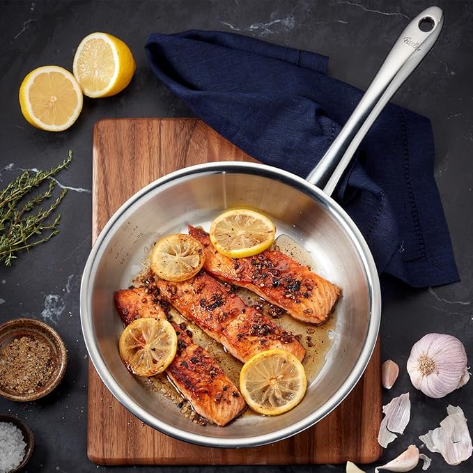 - 5-LAYER BONDED CONSTRUCTION: Fast, even heating with no hot spots—so every piece cooks consistently, from pan to pot. Each piece features a durable 5-ply body with premium 18/10 stainless steel and a multi-layer aluminum and steel core. Thickness ranges from 2.5mm to 3mm for excellent heat retention and warp resistance.