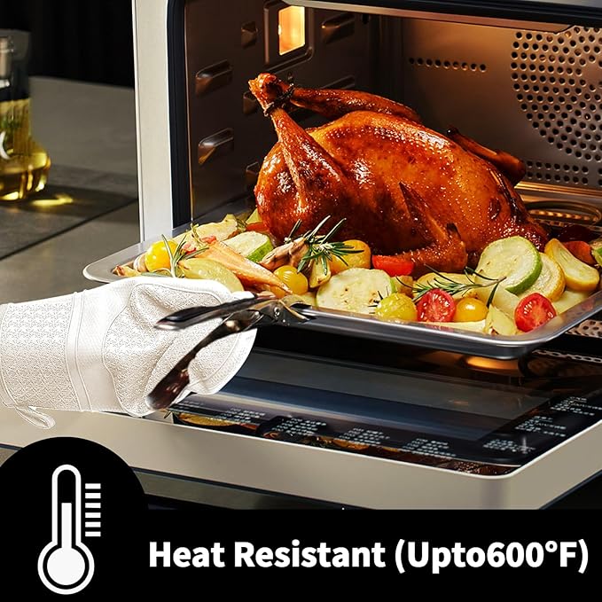 - 【Upgraded Heat-Resistant Food-Grade Silicone】Ditch bulky traditional silicone oven mitts! Our advanced food-grade silicone is lightweight, flexible, and heat-resistant up to 500°F. It’s odorless, BPA-free, and 100% safe for direct food contact—perfect for grilling, baking, or cooking.