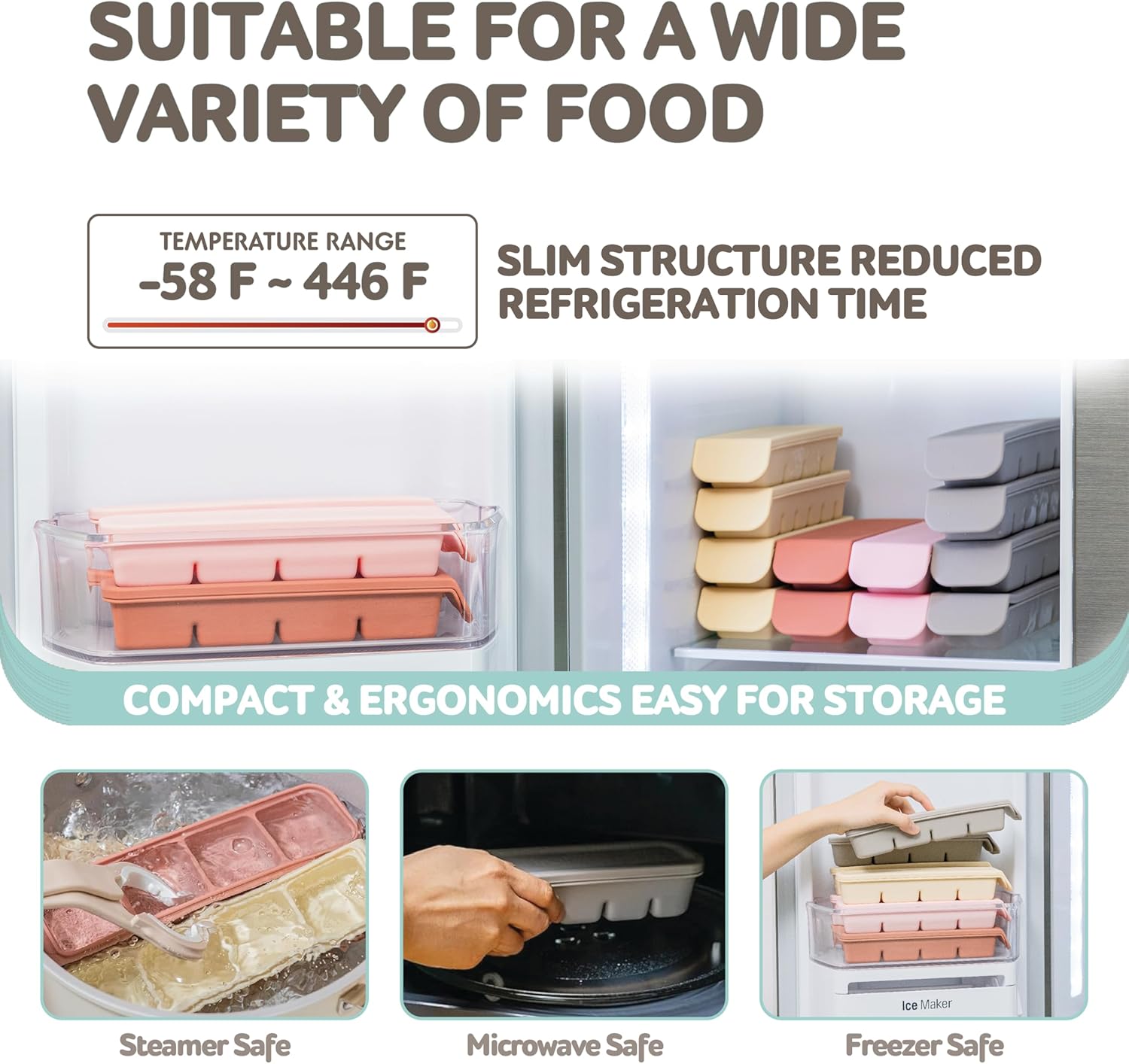- 【Versatile and Durable】 Made from 100% food-grade, BPA-free silicone, these baby food freezer containers are family-friendly and versatile, being both microwave and steamer safe for your cooking convenience