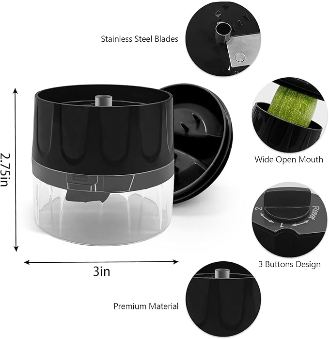 Handheld Spiralizer, 3-in-1 Zucchini Spiralizer Noodle Maker, Spiralizers for Veggie Noodles, Perfect for Zucchini, Carrots, & More, Portable Kitchen Tool (Black)