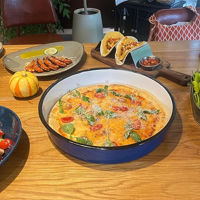 3-Pack Enamel Roasting & Baking Pan Set 10/12/14 Inch Round Deep Cake Pans for Turkey Pizza Casseroles Desserts Oven & Dishwasher Safe up to 932F Thanksgiving Holiday Gifts & Baking Dishes