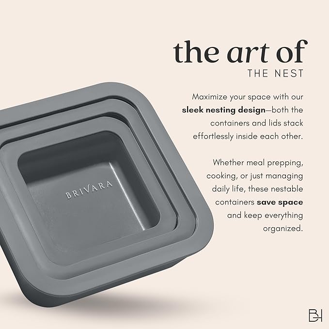 - KEEP YOUR FOOD FRESH! Made from high-quality glass and durable BPA-Free food grade silicone, these containers are an indispensable addition to your storage and organizing needs. The containers and lids have a nesting design to save space, so you can put them away neatly until needed.