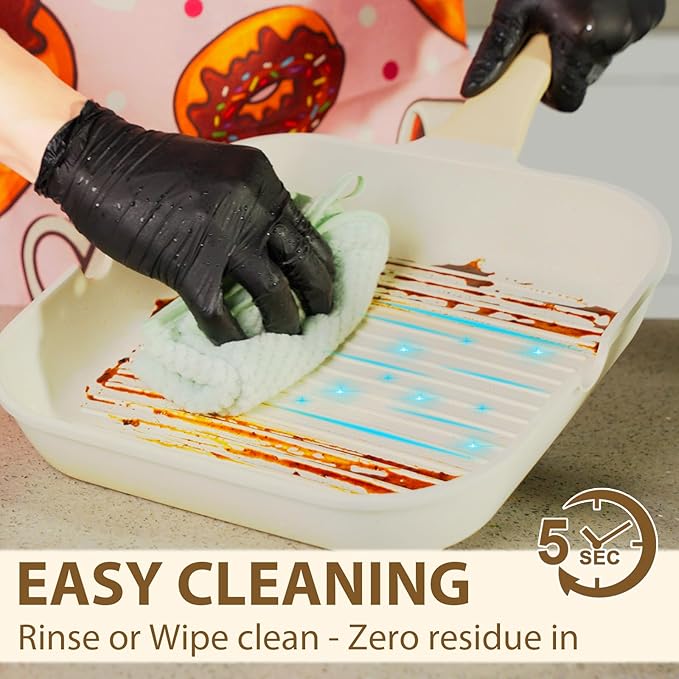 - Easy Cleaning - Dishwasher-safe. Note: natural aluminum will discolor when placed in a dishwasher. We recommend hand simple rinse or quick wipe effortlessly removes any residue, ensuring your cookware remains spotless and maintains its pristine condition with ease.