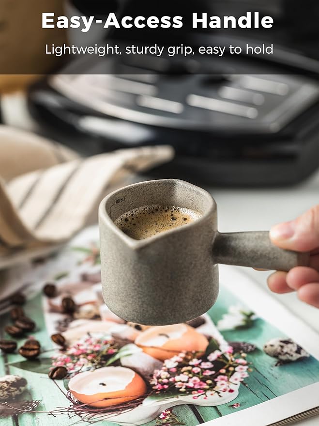 - Double-Spout Design: With two V-shaped spouts, this espresso measuring cup ensures smooth, controlled pouring from either side, ideal for left- or right-handed users