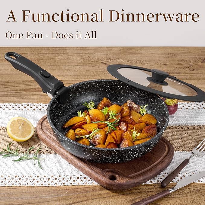 - Optimal Storage: Neatly stack all the detachable handle pots and pans, saving 75% of cabinet space—keeping the kitchen organized and tidy. Perfect for compact kitchens and an ideal choice for RVs or campers.
