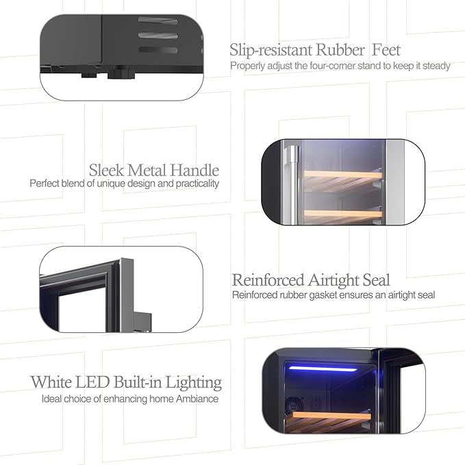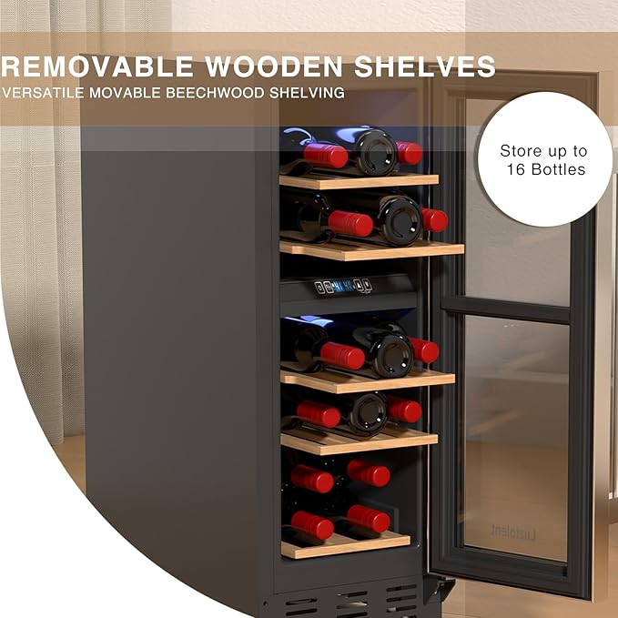 - Compressor Cooling Technology: The Luztolent wine cooler uses energy-efficient compressor cooling technology, ensuring quiet and stable operation. This system preserves the distinct flavors of every wine variety, offering peace of mind and perfect storage conditions