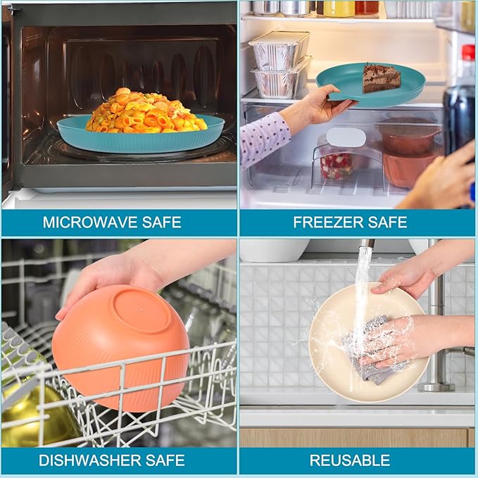 - Eco-Friendly & Food Safe: Made from natural wheat straw fiber and food-grade PP material, this dinnerware set is 100% BPA-free, lightweight, non-toxic, and odorless. It's reusable and environmentally friendly, making it a healthy choice for direct food contact.