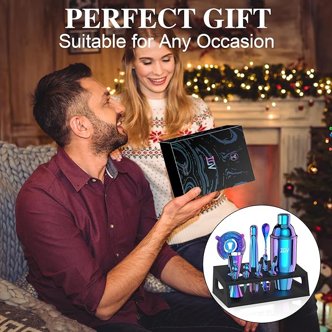 IOV Mixology Bartender Kit with Stand | 12-Piece Cocktail Shaker Set | 24oz Martini Shaker Set for Drink Mixing | Bar Set Includes All Bar Tools and Recipe Booklet | Fun Housewarming Gift (Rainbow)