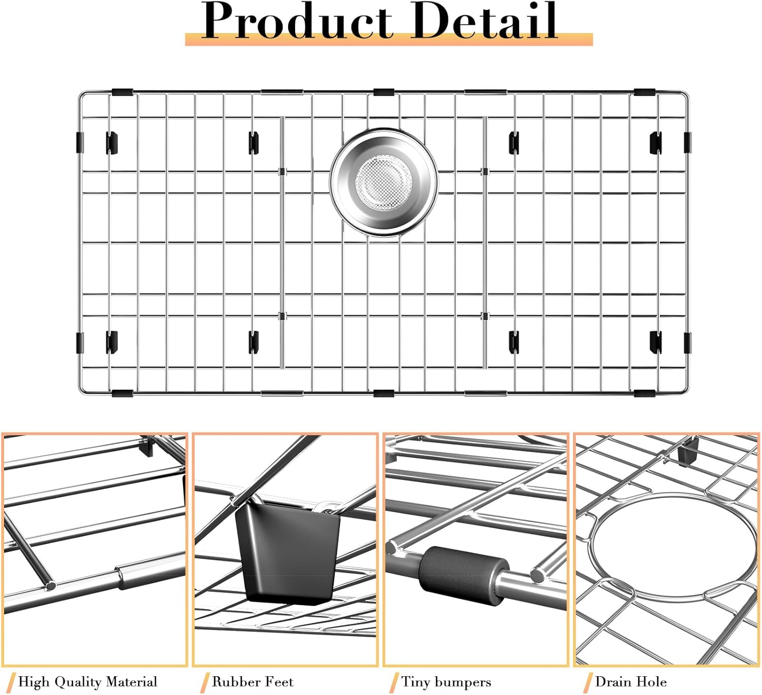 - Product Design: The stainless steel sink bottom protector effectively protects the sink from garbage inflow. An open grid design allows water to flow freely from under plates and cutlery to improve sink drainage