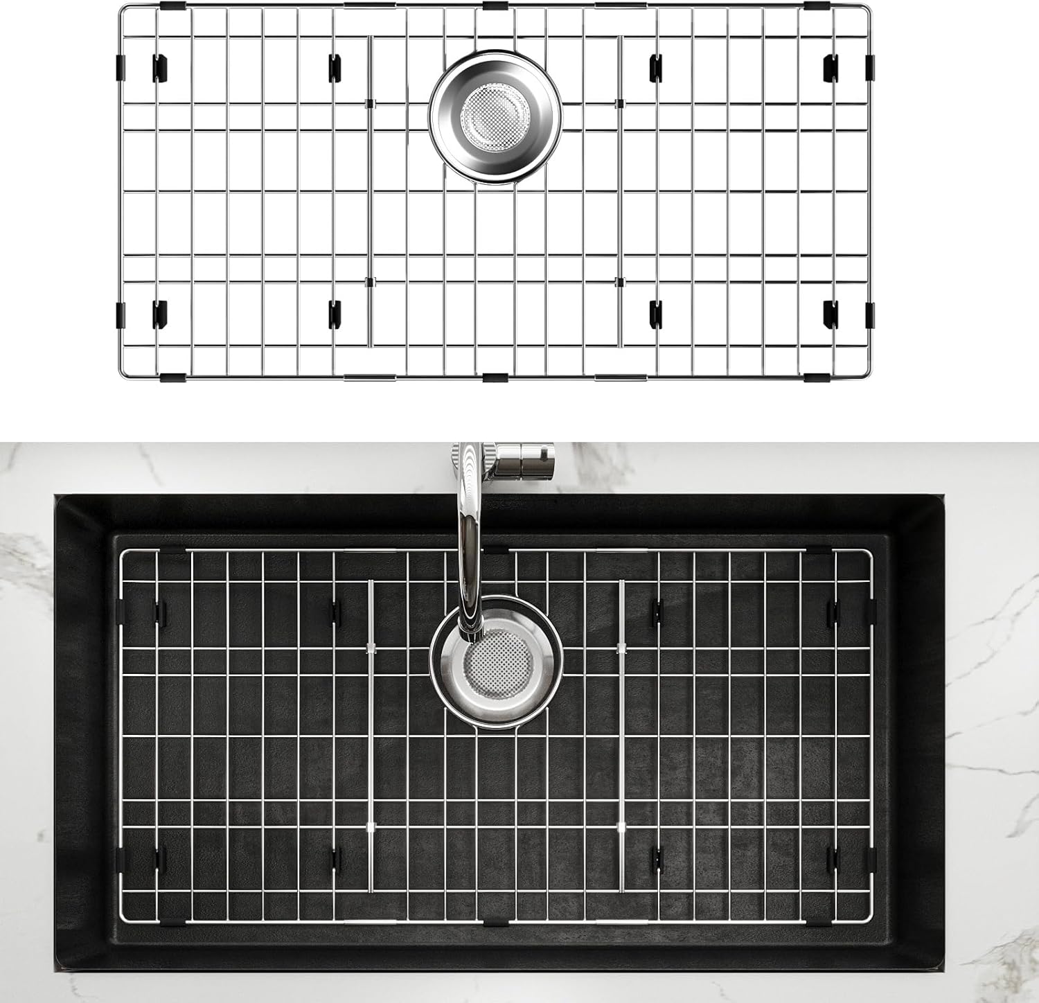 - Easy to Clean: Metal sink protectors for kitchen sink can be cleaned in the dishwasher or by hand. Simply rinse the rack with water and use it again. Great kitchen sink accessories! Note: The rubber mat must be removed before placing the grid in the dishwasher