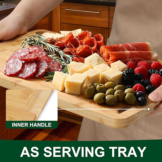 - 【Effortless Care & Enduring Protection】Spend less time cleaning and more time cooking! Just a quick rinse wipes away residue on the cutting board—no fuss, no harsh chemicals. Preserve its beauty and function by applying food-grade mineral oil every few months; this simple step builds a protective shield against water and cracks for bamboo cutting board. Staying impeccably smooth and hygienic