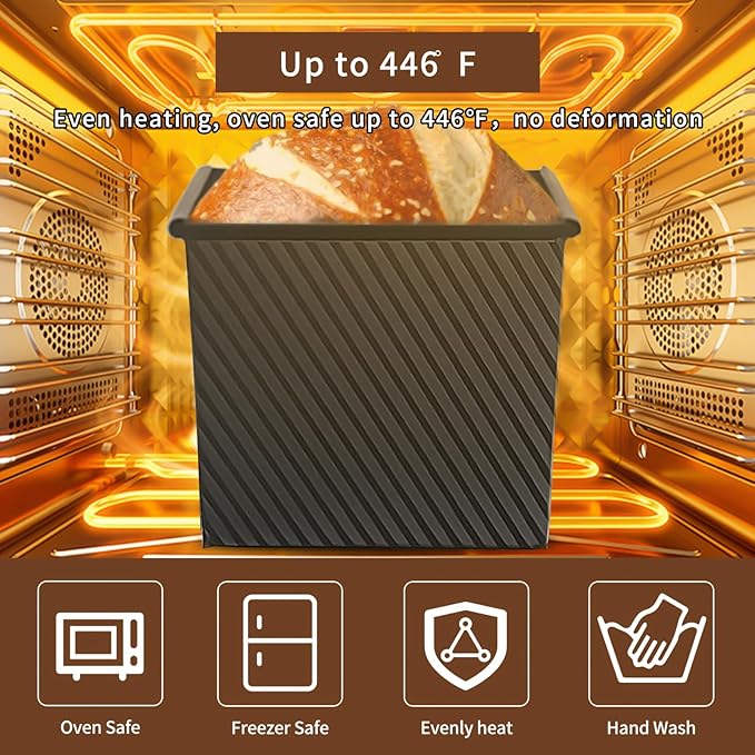 - Oven Safe and Heat Resistant: Our black 13 in pullman loaf pan with lid is made of heavy-duty carbon steel, ensuring it can withstand oven temperatures up to 446°F. Enjoy uniform heating without warping