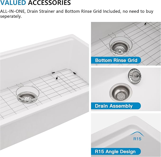 - 〓 30 inch undermount granite kitchen sink is made of premium quartz composite material (natural quartz crystals and acrylic resin, etc.) with a hard, smooth, compact and non-porous finish as real stone, highly resistant to chips, fades and scratches, easy to clean and maintain. Classic quartz pure white color definitely makes it the perfect indispensable addition to your kitchen.