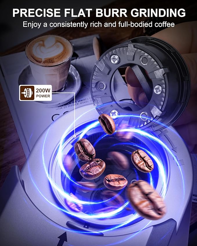 - [Convenient Operation, Low Noise]: Our professional coffee bean grinder is incredibly user-friendly. Just adjust the coarseness setting, set the number of cups, and press the switch button. The burr grinder handles the rest automatically. Plus, it operates quietly, so it won't disturb your household.