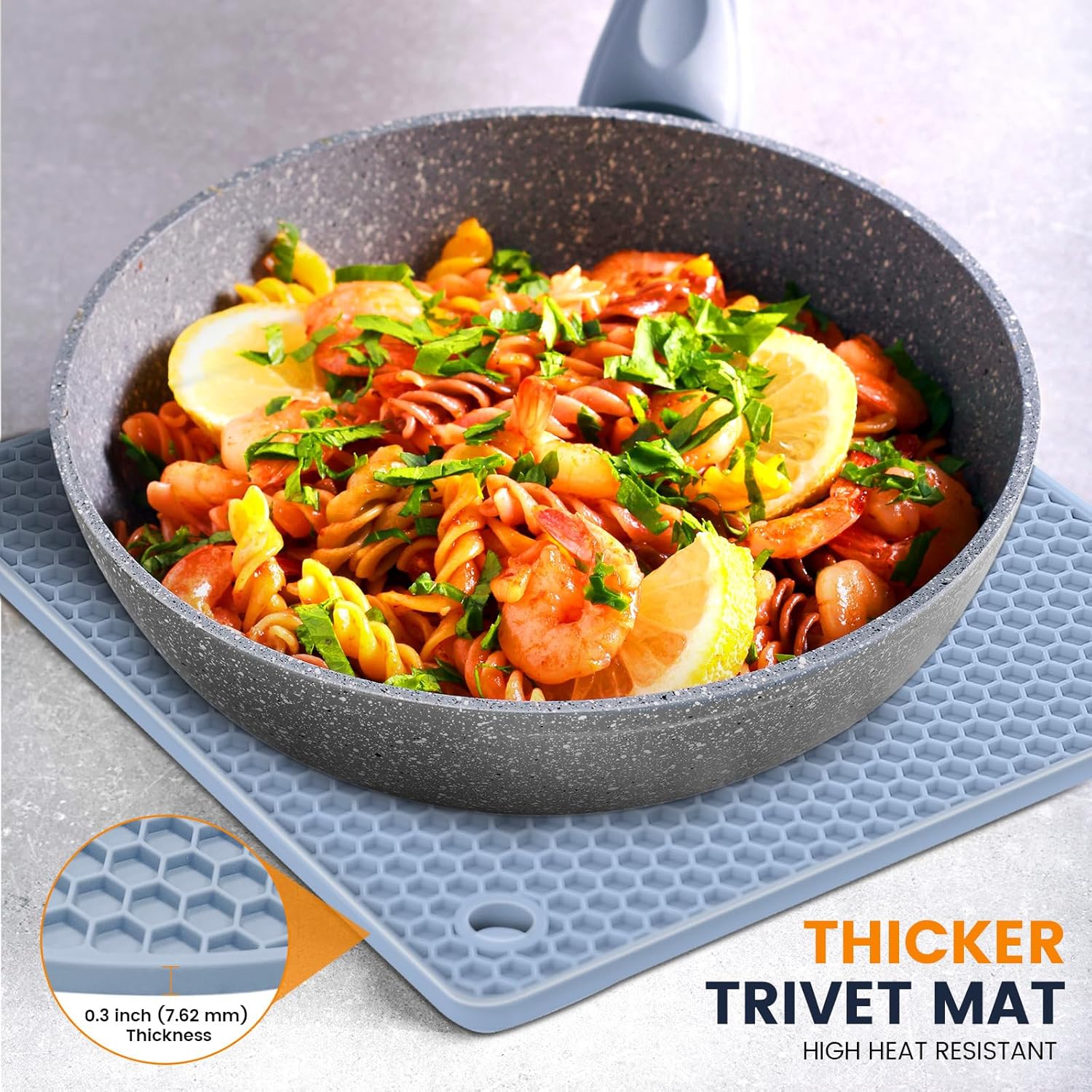 Silicone Trivet Mats 4 Heat Resistant Pot Holders Multipurpose Non-Slip Hot Pads for Kitchen Potholders, Drying mat, Jar Opener, Spoon Holder, Coaster(Nordic Blue)