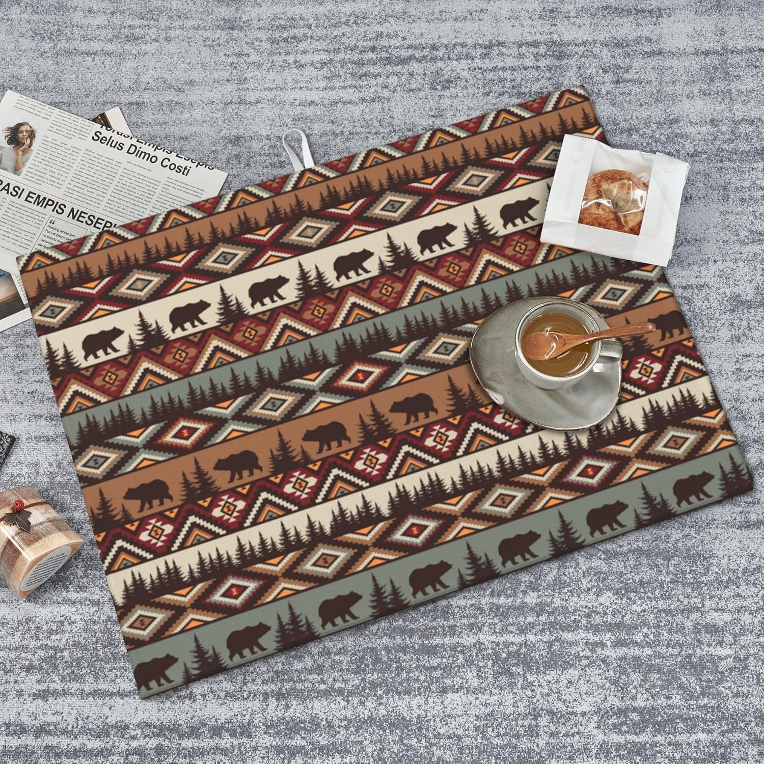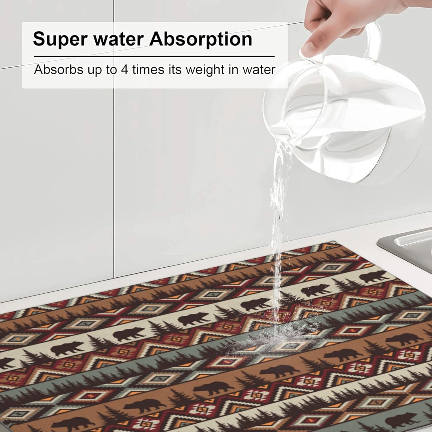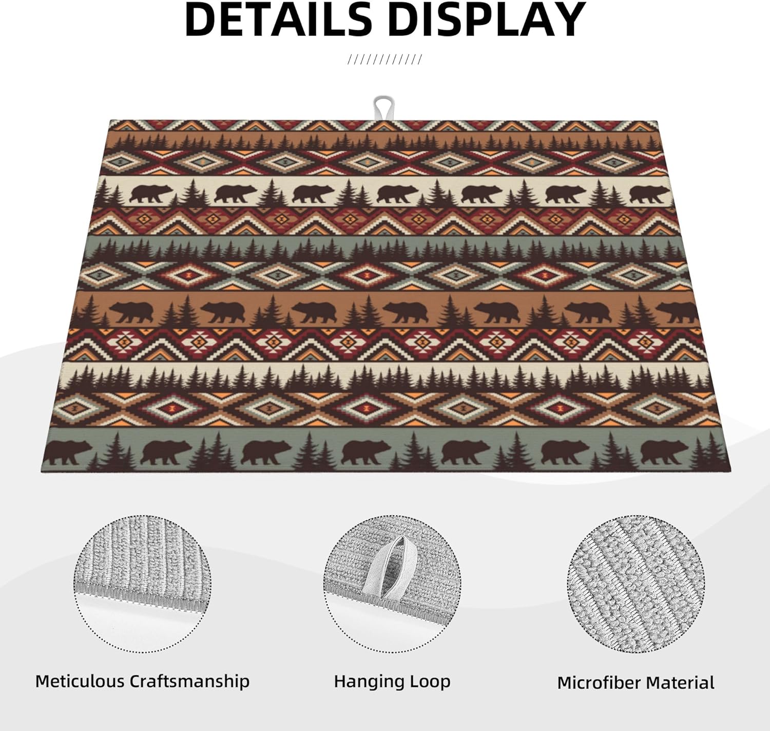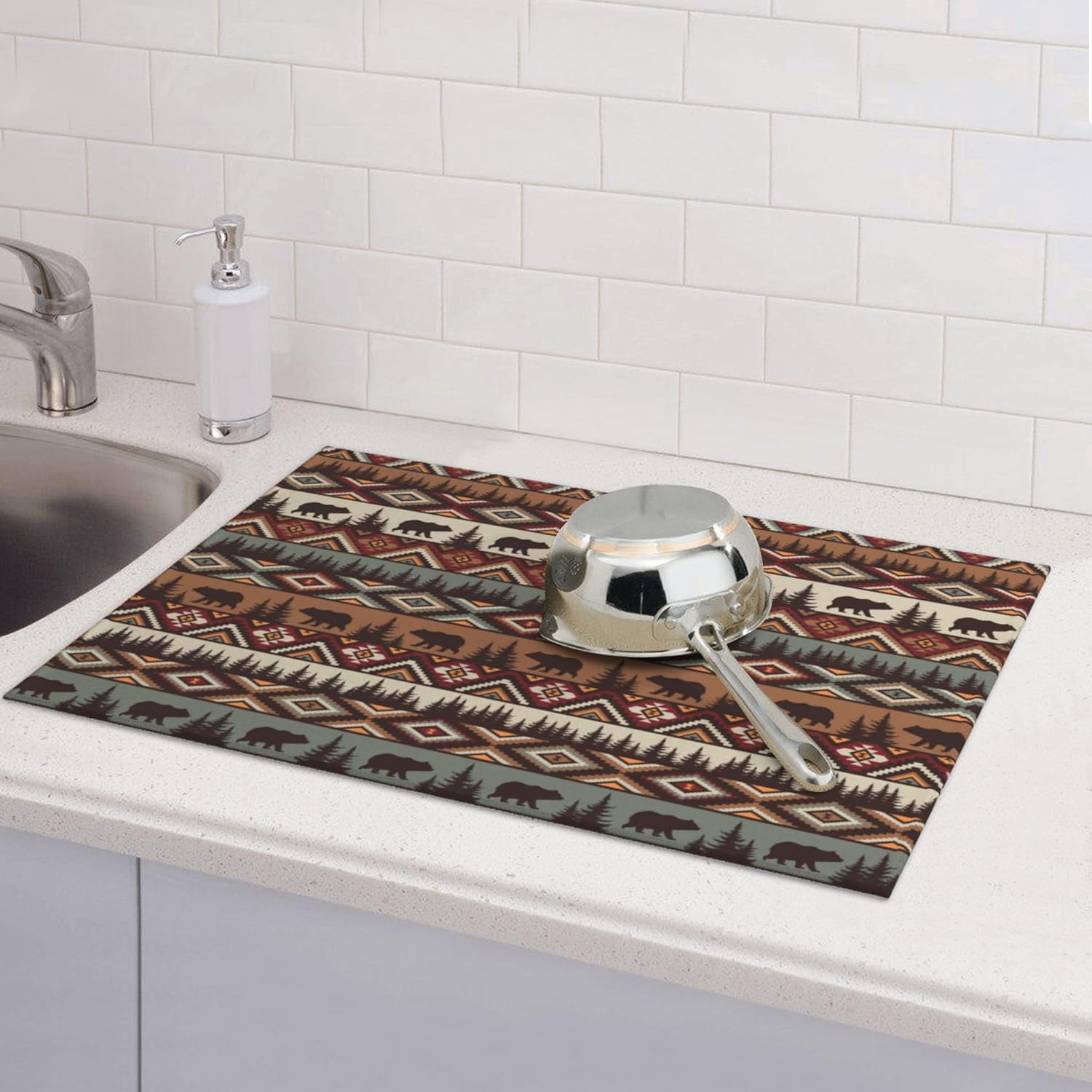 Bear Mountain Microfiber Dish Drying Mat for Kitchen Counter Vintage Rustic Dishes Pad Dish Drainer Rack Mats 18"x24" Absorbent Washable Reusable