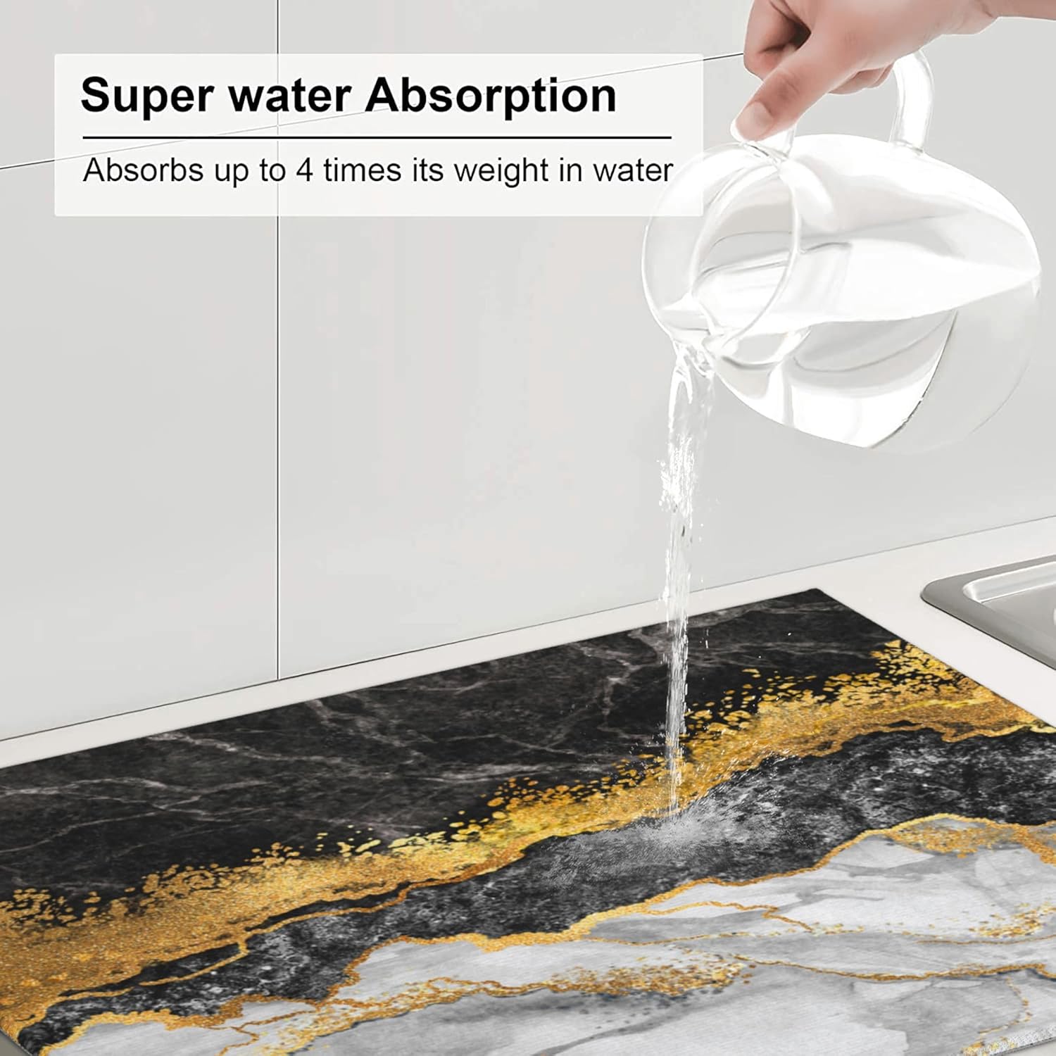 Gold and Black Grey Kitchen Drying Mat Black Gold Marble Decor Microfiber Dish Drainer Mat for Kitchen Counter Absorbent Reusable Washable 18x24 Inch
