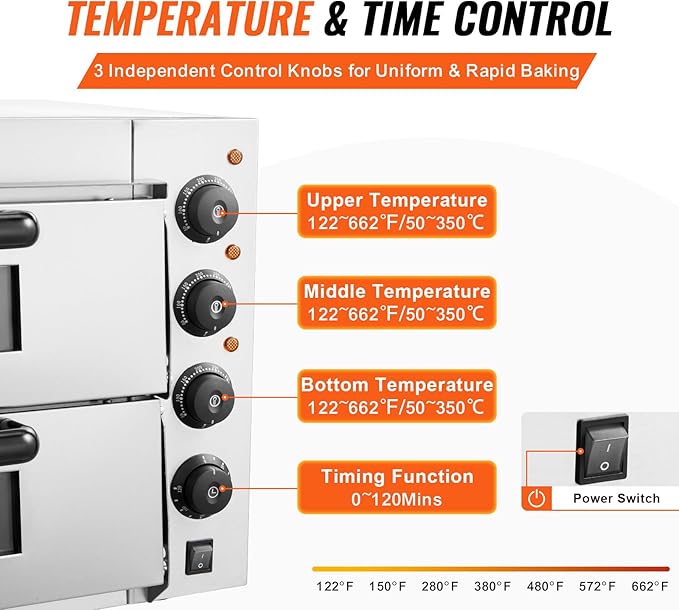 - Enjoy Crispy Pizzas Every Time: The powerful commercial pizza oven empowers you to bake crispy and yummy pizza just in few minutes. Coupled with three heating tubes, it unleashes 360° uniform baking and sufficient heat to swiftly cook your food to perfection every time.