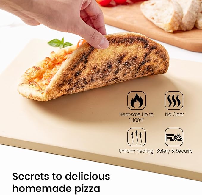 - PIZZERIA QUALITY PIZZAS AT HOME ANY TIME. Evenly distributes heat for optimal cooking, absorbs moisture out of the dough, give you the crispy, browned crust that you crave. Not only for pizza but also for bread, cookies, biscuit and more, heat or reheat ready-made pizzas for much crispier results.