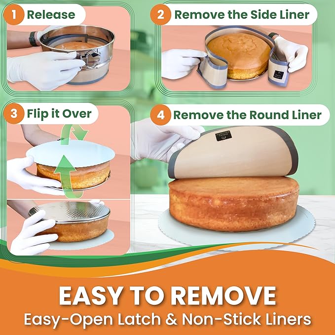 - NATURALLY NON-STICK FOR EASY CAKE RELEASE - The food-grade silicone liner provides a smooth, reusable non-stick surface, eliminating the need for disposable parchment paper and sprays. Enjoy flawless cake removal without harmful chemicals!