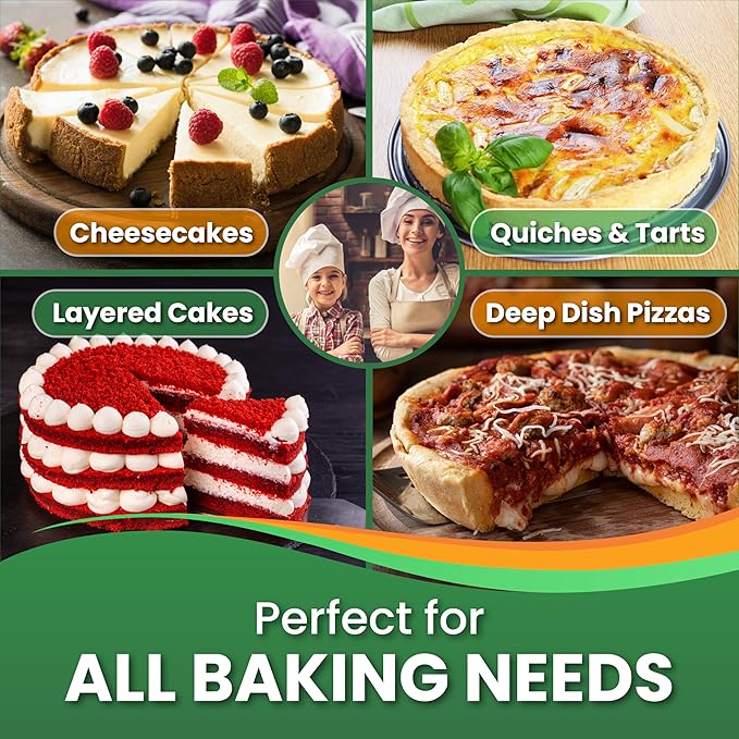 - 100% NON_TOXIC, NON-REACTIVE MATERIALS FOR SAFE, HEALTHY BAKING – Bake with confidence using our 304 stainless steel spring form pans 9 inch and food-grade silicone liner. Free from PFOA, PFOS, B.P.A., and lead, with our set, you can forget about the release of harmful chemicals into your food, ensuring a safe and healthy baking experience for you and your family.