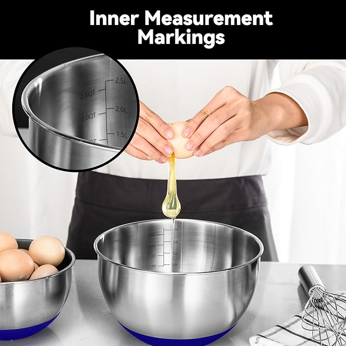 - 【Nested Design for Space Efficiency】: This set of five mixing bowls is designed to nest within each other, saving valuable cabinet or drawer space in your kitchen. The variety of sizes ensures you have the perfect bowl for any task.