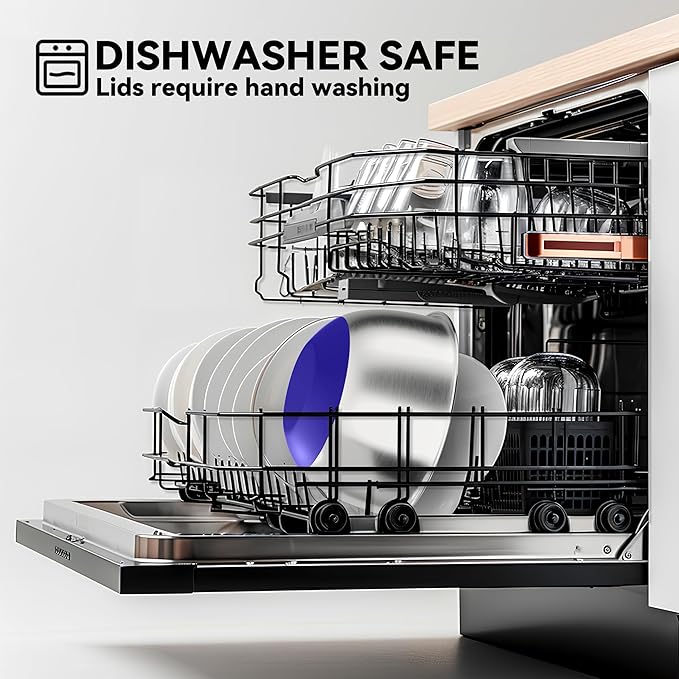 - 【Easy to Clean】: Made from quality stainless steel, these bowls are dishwasher safe (excluding lids), offering hassle-free cleanup so you can spend more time enjoying your meals.