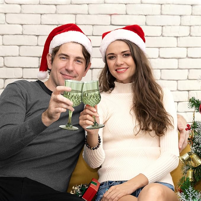 XUWAIDSGN 16 Pcs 7oz Plastic Vintage Wine Glasses Drinking Glasses Unbreakable Wedding Glassware Crystal Water Goblets Reusable Drinkware Vintage Champagne Flutes (16, Dark Green)
