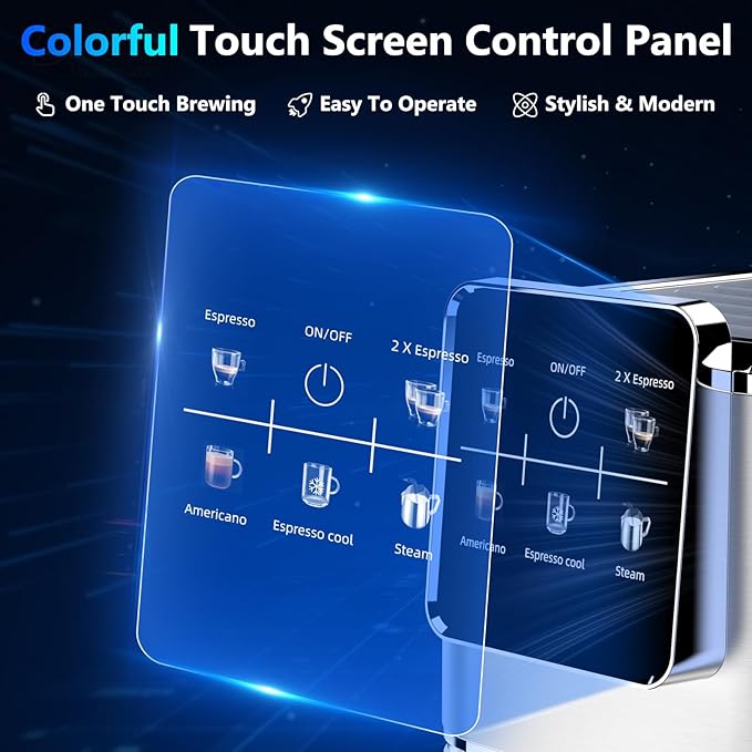- Touch Screen Espresso Coffee Machine For Home: The URintells Cuising espresso coffee maker is equipped with a user-friendly colorful touch screen control panel that is stylish, modern and easy to operate. With intuitive and clear display, you can easily choose and prepare all your favorite espresso-based coffees at the swipe of your finger, such as espresso, cappuccino, latte, americano, and iced coffee. Using a espresso cappuccino machine has never been easier